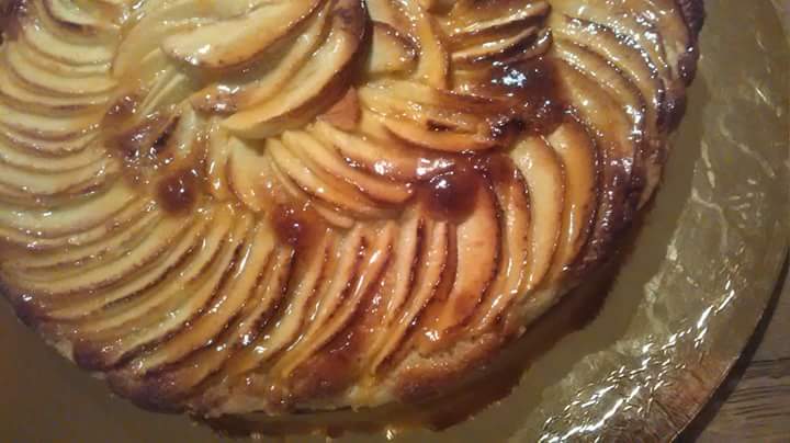 c’est juste une simple tarte aux pommes avec un pâte sucrée façon Felder, une crème d’amande et des goldens…