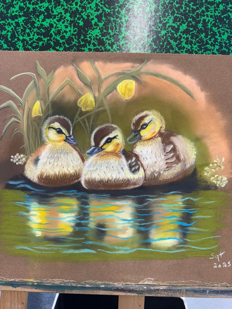 🐥💦 Trois petits canetons se dandinent joyeusement dans la mare, nageant en cercle et poussant des petits cris de bonheur. La nature est pleine de magie ! 🌿✨ #Canetons #Nature #Bonheur
